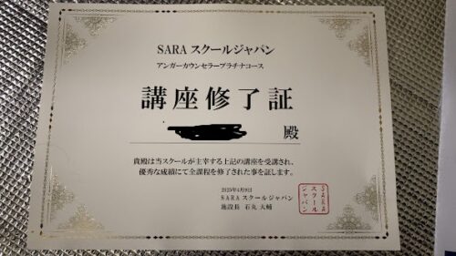 メンタル心理と同じように、SARAスクールさんで学習・取得させていただきました。